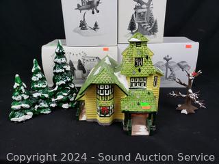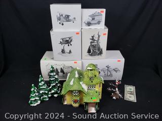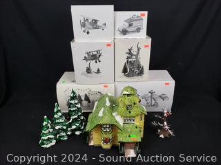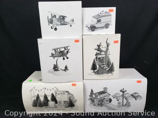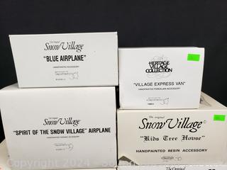 "Village Resort", "Village Express Van", "Blue Airplane", "Spirit of the Snow Village Airplane", "Kids Treehouse", "Tree Lot Accessory", "Village Used Car Lot". Most with original packaging. Refer to photos for more details.