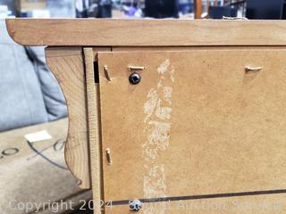 Matches the previous & next lots. 2 Hidden drawers in top trim. 36" H x 68" W x 19.75" D. Wood fronts. A few minor scuffs, dings, overall excellent condition.