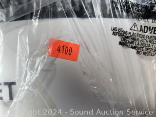 Appears new, sealed in original packaging, unused. 120" x 110".