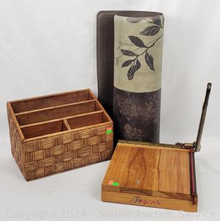 Lot #0144: Memory Foam Mat, Vtg. Paper Cutter, Desktop Organizer