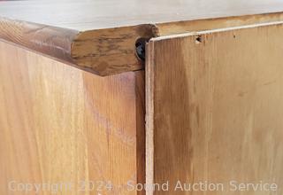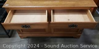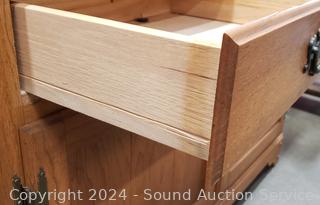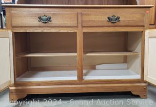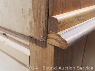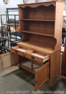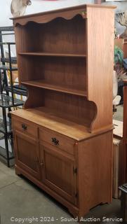Lot #0005: Solid Oak 2pc Open Hutch/Cabinet