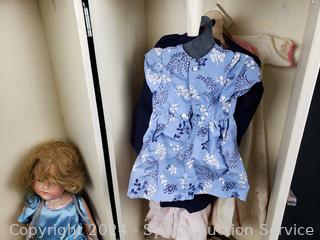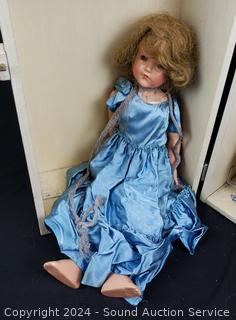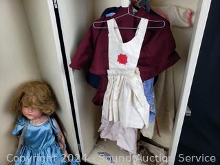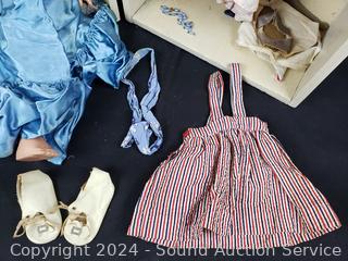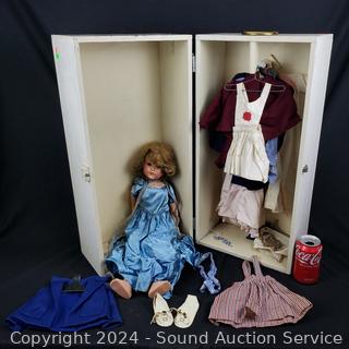 Lot #0149: Vintage Wood Doll Case w/Effanbee Doll & Clothes