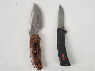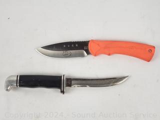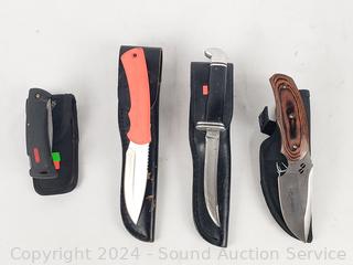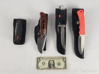 Lot #0121: 1 Buck Folding & 3 Fixed Blade Knives