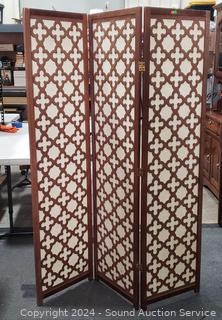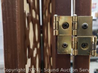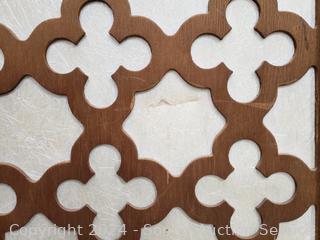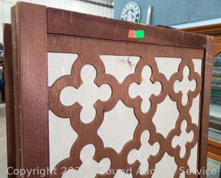 Each panel has a hole, various scuffs, scratches in wood finish.