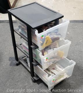 Lot #0060: 3 Rolling Organizers w/Assorted Scrapbooking/Crafting Supplies