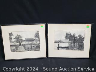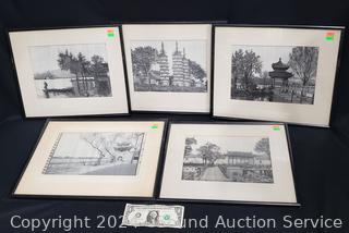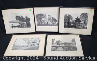 Lot #0166: 5pc Vintage Silk Screen Brocade Artwork