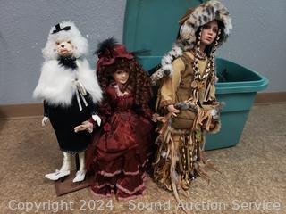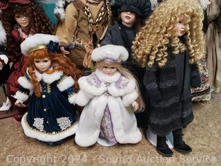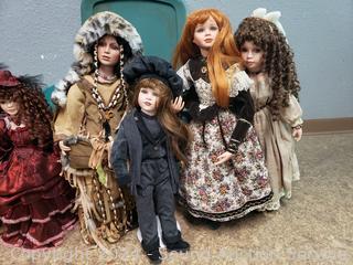 2 Limited Show Stoppers, 1 Collectors Choice, Limited Duck House Native Doll, and others. Approx. 28" tall. All with stands.