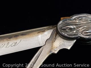 322 Lots including Vintage & Antique Furniture, Rifles, Wallace Sterling Silverware Set, Gold & Silver Jewely, Silver Flatware & Dishes, Fraternity Keys, 3-Story stair Lift, Knives, Lighters, US Military Swords, Doctors Bag w/Tools, Vtg. Violins, Saxophone, Clock/Watches, Fine China, Arts & Crafts/Scrapbooking Supplies, Roseville Vases, Red Wing Crocks, Franciscan Dish Set, Pop-up Canopy, Tent, Cots, Folding Chairs & Much More!!!