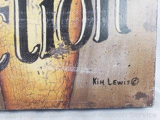 ©Kim Lewis 25.5" x 11.25" "Lights, Camera, Action". Cinema 45.5" x 9". Some scuffs, wear to finish on both.