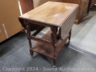 Lot #0057: Oak Drop Leaf Tea Cart/Table