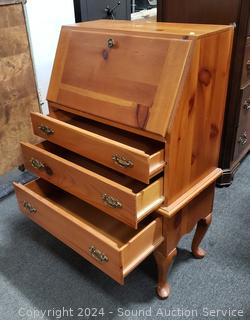 Lot #0009: Pine 3-Drawer Secretary Desk