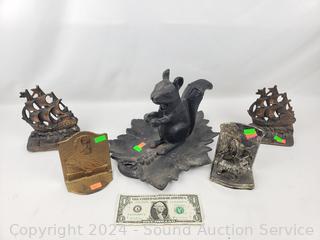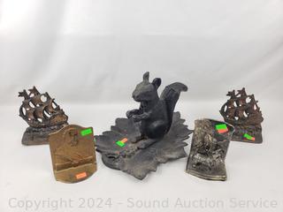 Lot #0149: Squirrel Cast Metal Nutcracker & 4 Bookends