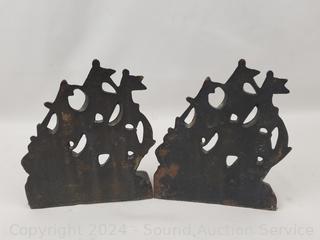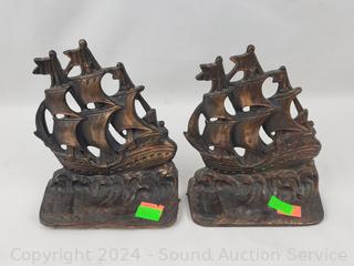 Matching ship bookends & mix match set. Some scuffs, wear from use.