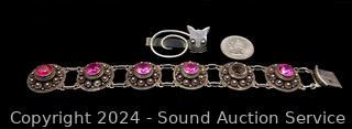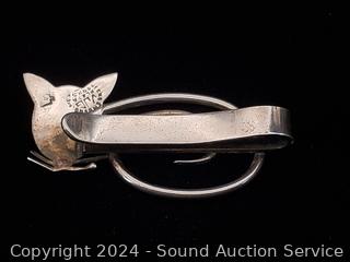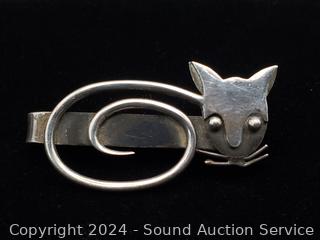 Lot #0090: Sterling Cat Tie Clip & Vintage Bracelet