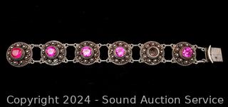 Bracelet is missing a stone. Both marked Sterling, tested silver. TW: 60.55g.