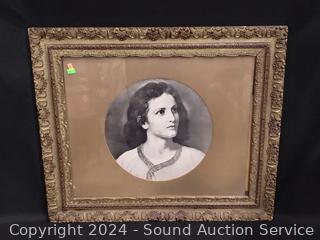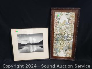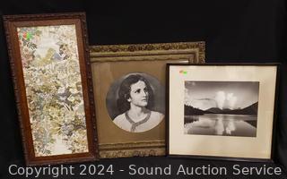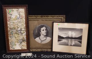 Lot #0270: Vintage "Christ" Print, Framed Brocade & Black & White Photo