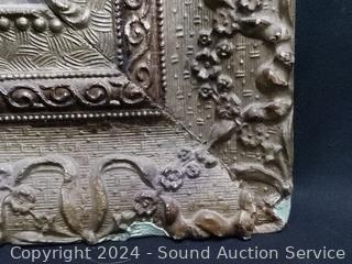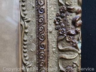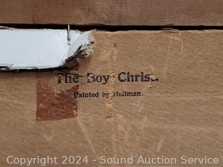Brocade 27.5" x 13.5", Photo 19.5" x 18', Christ 25.5" x 21.5" (some damage to frame).