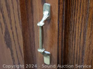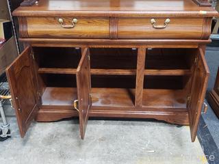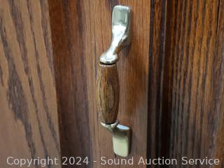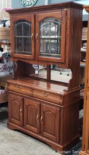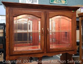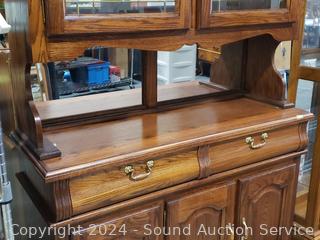Lot #0053: Winners Only 2pc Oak Lighted Mirrored Hutch