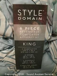 Lot #0291: 6 PC. King Reversible Comforter & Coverlet Set