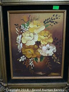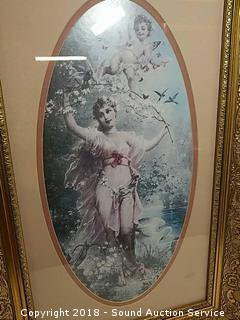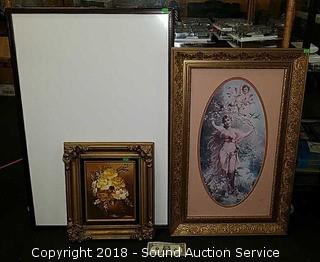 One is original oil on canvas, signed, refer to photos for signature. Fits a 12" x 10" piece of artwork. Other is a cherub print, fits a 25.5" x 15" piece of artwork. Dry erase board is 24" x 36".