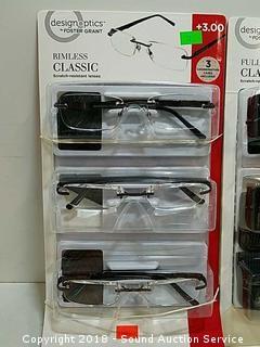 Lot #0079: Rimless & Full Frame Classic +3.0 Reading Glasses