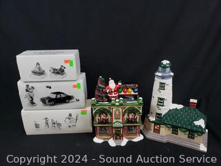 "He Led them Down the Streets of Town" (missing 3 person piece), "Round & Round We Go!", "Just Married", "Bronner's Christmas Wonderland" & "Lighthouse". Refer to photos for more details.