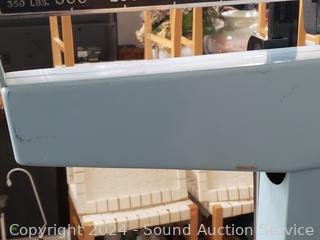313 Lots including Autographed Sports Jerseys, Photographs, Helmets, Fine Antique Oak Marble Inlaid Furniture, Gray Whirlpool Upright Freezer, Unique Large Art Nouveau Blue Shell Lamp, Vissani White 10.1 cu.ft. Refrigerator Freezer, Pig Statuaries, Fleece Recliner, Fine Art Wyland/Zahra & Other Giclee/Original Artwork, Maple Hutch, Assorted US Mint Coins, Personal Hygiene Products, Household Goods, Balances, Tools, Gold & Silver Jewelry & Much More!!!