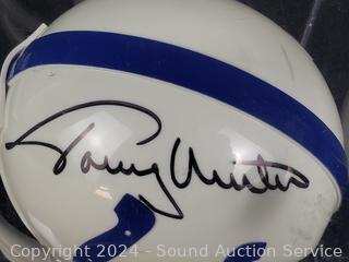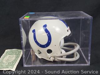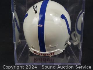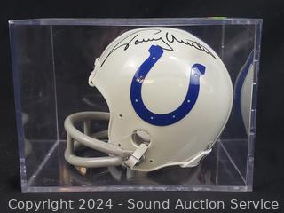 Lot #0245: Johnny Unitas Autographed Miniature 5" Helmet w/Display