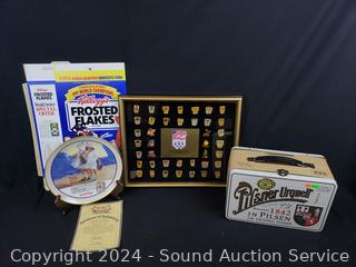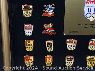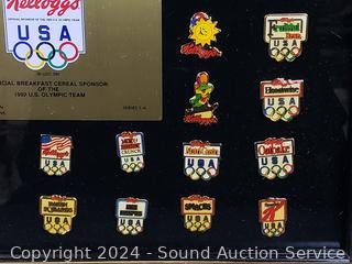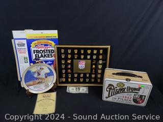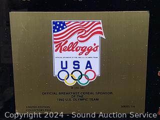 Lot #0261: Kellogg's 1992 Olympic Pin Collection, Collectors Plate & Pilsner Tin