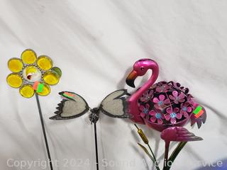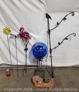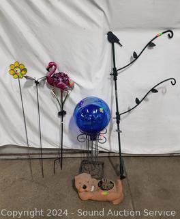 Lot #0040: Lawn & Garden Stakes, Gazing Ball, Planter Pot