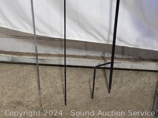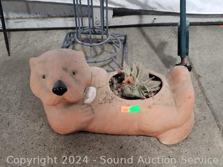 Approx. up to 42" tall. Butterfly, flamingo, flower stakes, table mount pot hanger, 25" H x 10" Dia. gazing ball, pottery otter pot.