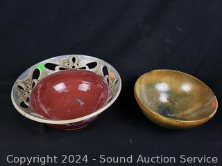 8.5" to 11.5" pottery bowls, 9" antler, 13" x 6.5" jaw, 10" x 5" mound.