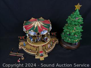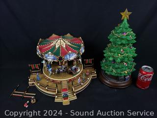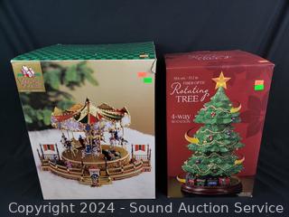 Lot #0167: Village Square Musical Carousel & Rotating Tree Christmas Decor