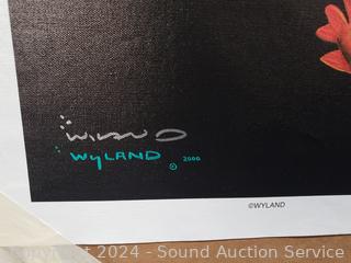 Wyland and his incredible project of painting 100 “Whaling Walls” around the world. Wyland’s murals are part of his mission to raise awareness about marine conservation. He founded the Wyland Foundation, a non-profit organization dedicated to promoting, protecting, and preserving the world’s oceans, waterways, and marine life through art and education. Hand signed & numbered 201/2000. 33" x 33". No frame. Estimated value on wyland.com $3,690.
