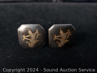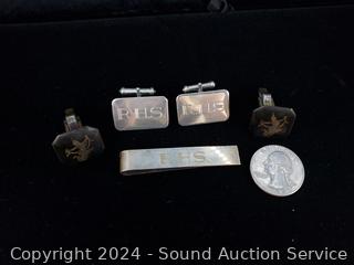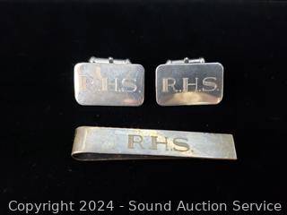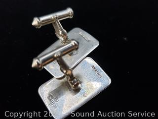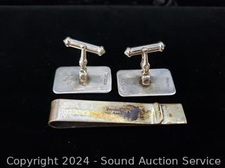 Lot #0119: 2 Pairs of Sterling Cufflinks & Tie Clip
