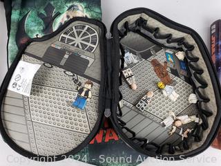 Books, VHS tapes, decals, puzzle, stocking, Lego tote. Refer to photos for more details.