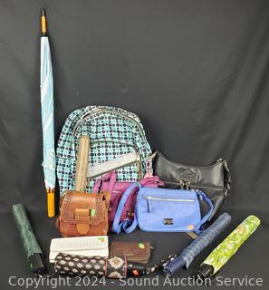 Handcrafted leather purse, S&Co purses, L.L.Bean bag, St. John's Bay purse. 6 umbrellas, 1 does not stay open. Refer to photos for more details.