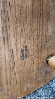 Trestle for legs of table is missing otherwise in excellent condition. Table is mixed wood, chairs are solid oak. Comes with (2) 12" leaves. 30" H x 60" x 40".