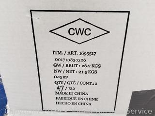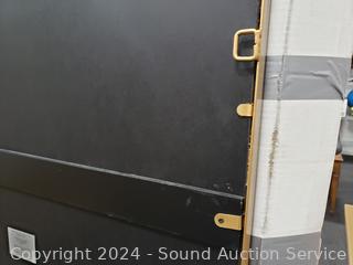 Appears new, comes with original packaging, don't see any issues. 65" H x 30" W.