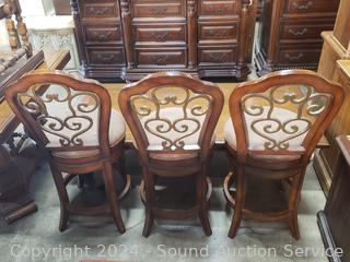 Lot #0031: 3 Filigree Accent Swivel Seat Counter Height Stools