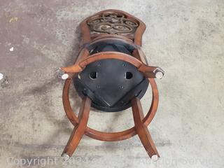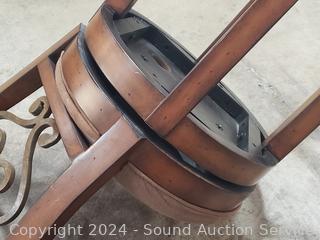 Some minor wear, overall great condition. Metal filigree accent on backrest. 42.5" x 17" x 15", 24" to seat.