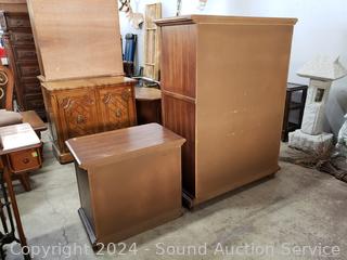 252 Lots including MCM 9-Drawer Walnut Lowboy Dresser, Vtg. 1979 Williams Trizone Quarter Pinball Machine - Works!, Vtg. Dining Table, Vtg. Mirrored Hall Tree, Big Bike Dual Motorcycle Transport Trailer, Wallace Sterling 4pc Service for 12 Silverware Set, Vtg. Howard Miller 3-Weight Pendulum Tall Clock, Ornate Riverside Bedroom Set, Fitness Equipment, Paddle Board, Tents, Folding Chairs, Vtg. Treadle Sewing Machin, Original Artwork, Ammunition, Noritake Garden Empress Fine China, Autographed Sports, Cards/Photos, Assorted Trading cards, Sports Memorabilia & Much More!!!