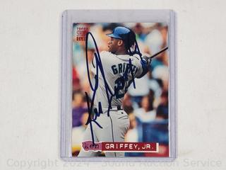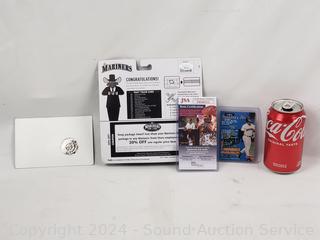 Train is sealed, autographed on the package, comes with certificate ticket. 1994 Topps Gen Griffey Jr. autograph card & Seattle Mariners Salute to the Armed Forces Coin.