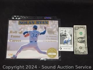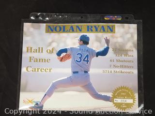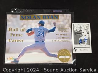 Lot #0161: Autographed Nolan Ryan Card & Spectrum Tribute Sheet