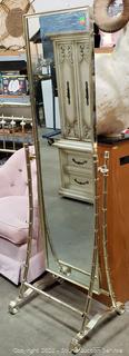 64" H x 20" W overall, 56.25" x 16.25" mirror. Some minor wear to finish from use.