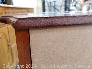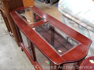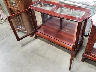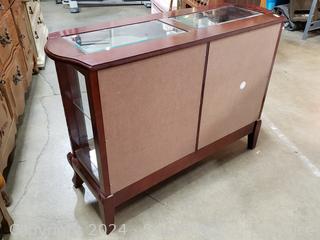Single glass shelf & top inserts. A few minor scuffs, overall great condition. 29" H x 40.5" W x 14.75" D.