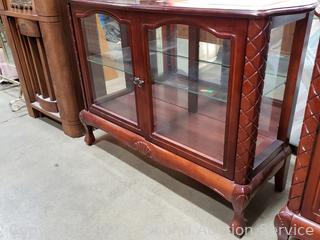 Lot #0016: Cherry Finish Mirrored Glass Top Curio Cabinet