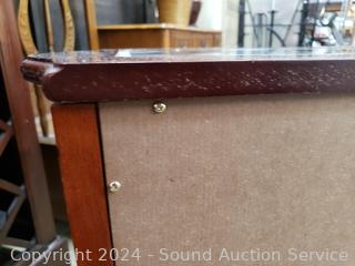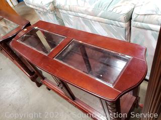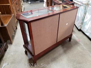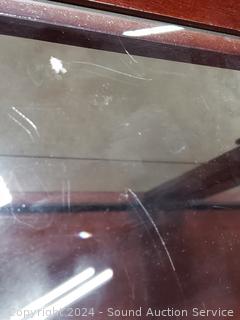 Single glass shelf & top inserts. A few minor scuffs, overall great condition. 29" H x 40.5" W x 14.75" D.