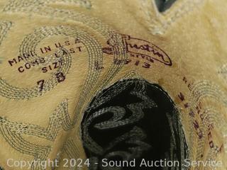 Justin Boots are S:7, Vince I don't see a size, inserts are loose. Both with signs of wear from use. Refer to photos for more details.
