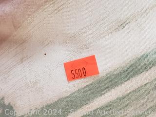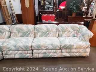 Approx. 30" H x 144" x 118" x 19" to seat. Don't see any major issues. Signs of use. Print is good at hiding imperfections. Refer to photos for more details.